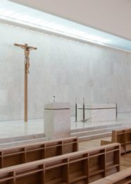 “Não é uma arquitetura conservadora. Nem caricatura de igreja que habitualmente vemos, imitam um barco, ou uma espiga, ou igrejas que imitam uma tenda. Quisemos fazer um edifício contemporâneo que fosse uma igreja e tentamos adotar o conceito do Concilio à arquitetura”, desenvolveu.