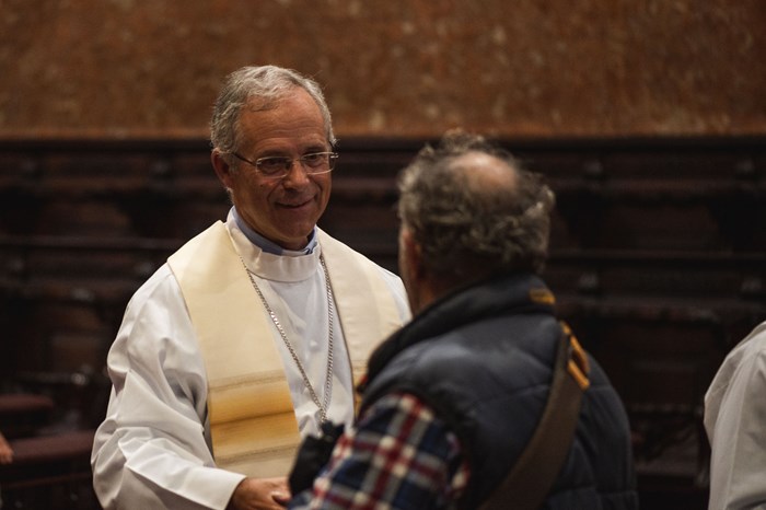 Começo, assim, por saudar todo o povo de Deus que caminha na diocese de Angra, sejam os padres, religiosos, outros consagrados ou leigos, as paróquias e demais comunidades eclesiais. Saúdo os anteriores bispos de Angra, em especial D. João Evangelista Pimentel Lavrador, o meu antecessor. Uma saudação amiga e reconhecida ao Administrador Diocesano, P. Hélder Fonseca Mendes que, durante mais de um ano, administrou a diocese.